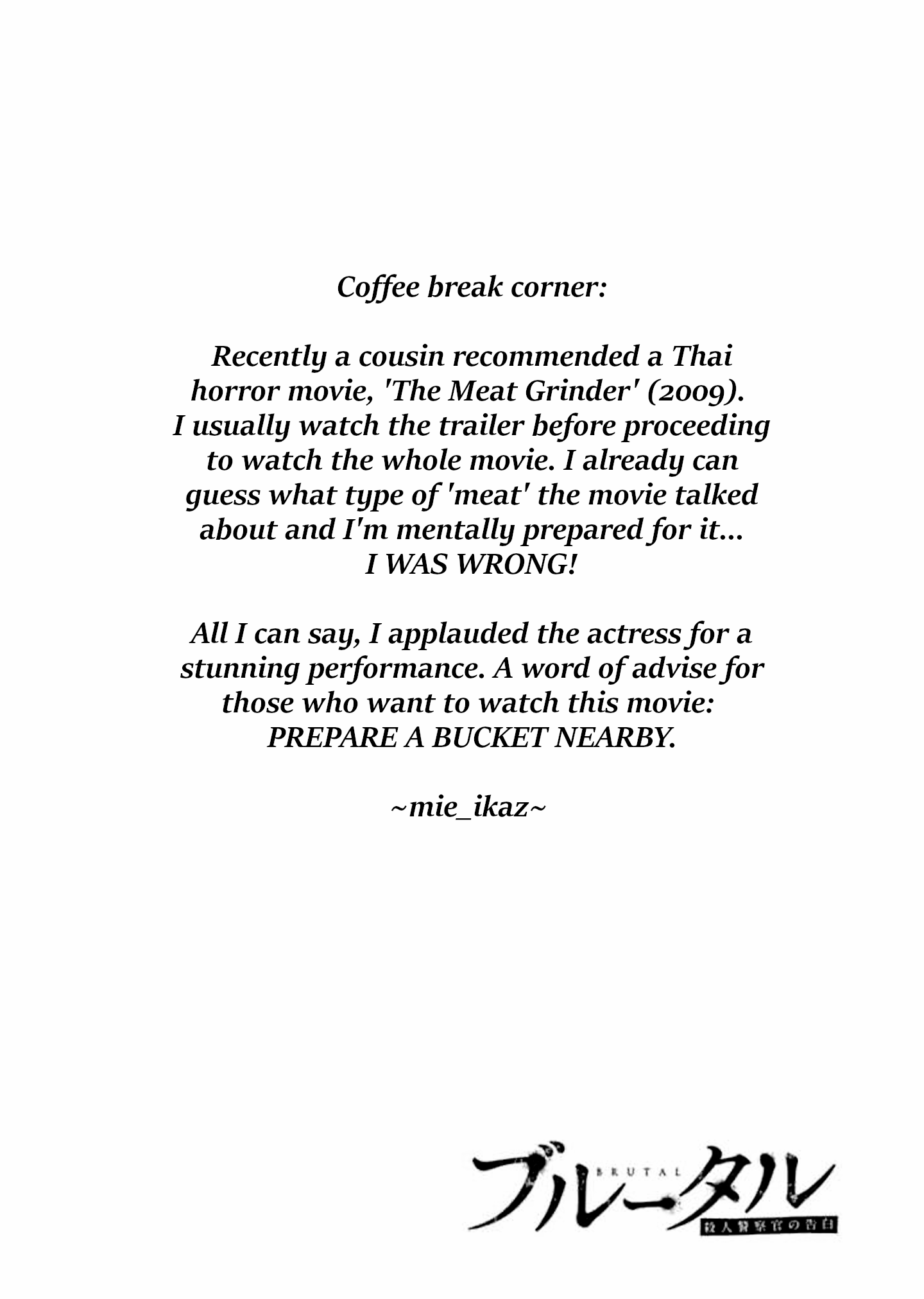 Brutal: Satsujin Kansatsukan no Kokuhaku